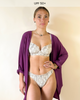 FABRIC: Glistening Non-itch Eco-Sheen, inner 3rd layer to prevent sheerness when wet. 74% Recycled Nylon 15% Spandex, 10% Metallic silver thread